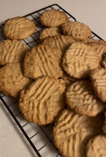 Contains flour, sugar, peanut butter, butter, brown sugar, extracts, eggs.
